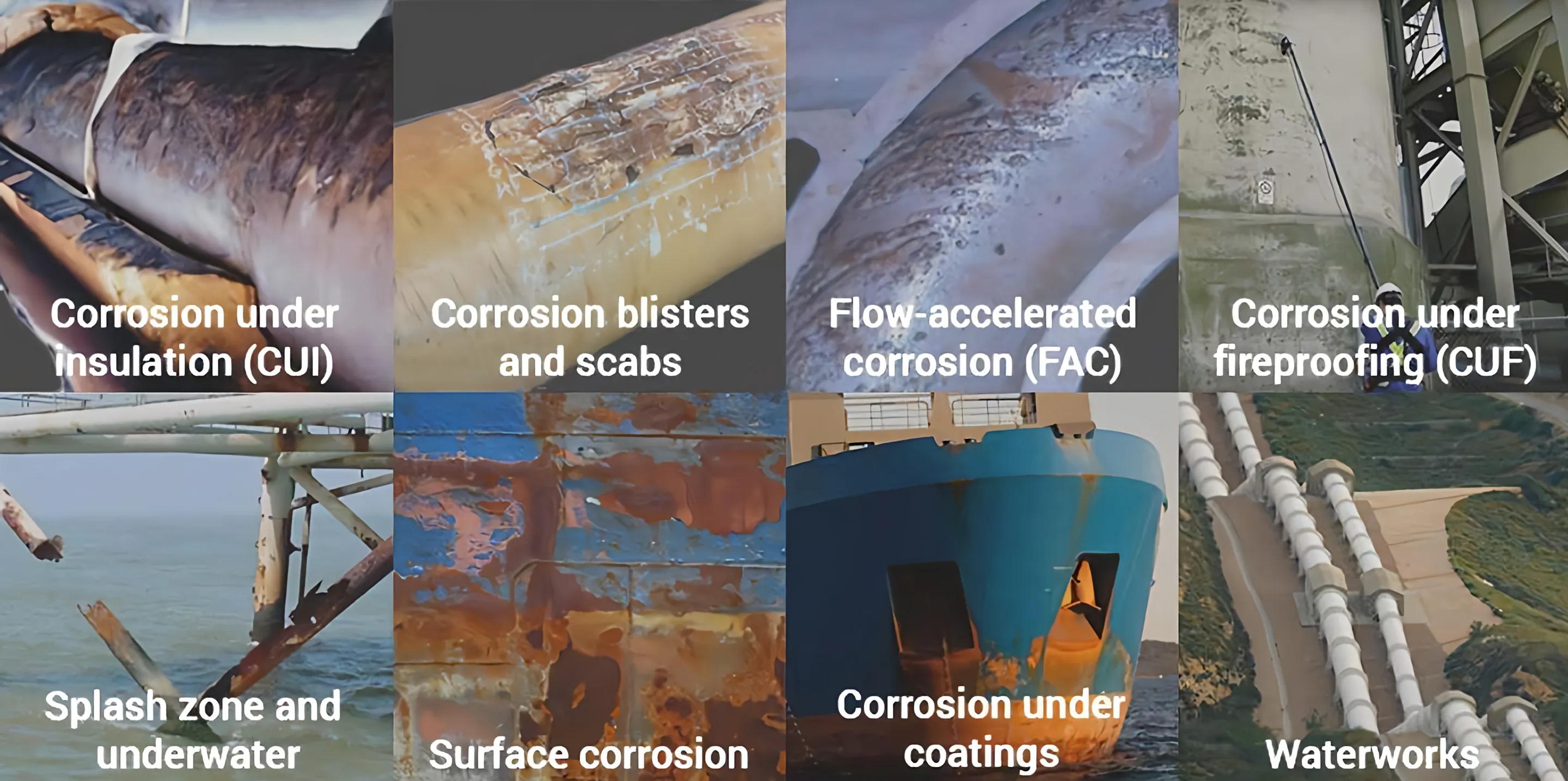 Effectively detects issues like Corrosion Under Insulation (CUI), Flow Accelerated Corrosion (FAC), and Corrosion Under Fireproofing (CUF).